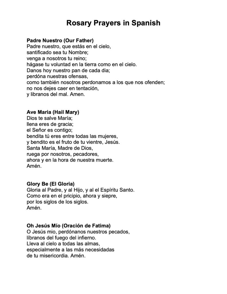NOTE: The third mystery of every set will be prayed in Spanish.
